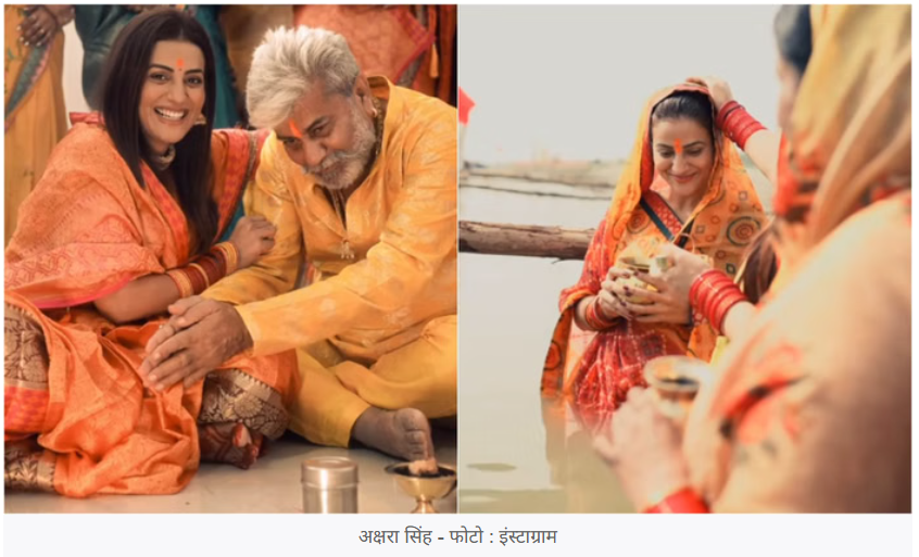 अक्षरा सिंह ने साझा की पारंपरिक छठ पूजा की तस्वीरें