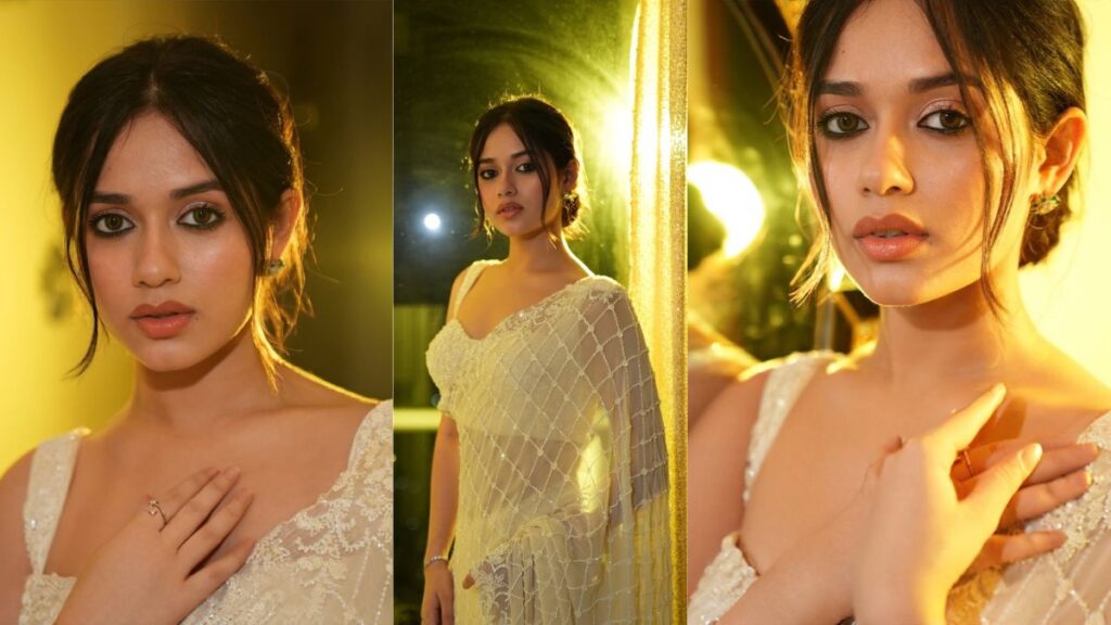 हाल ही में Jannat का नया फोटोशूट वायरल हुआ जिसमें उन्होंने ऑफ-व्हाइट नेटेड आउटफिट पहना है। बीडवर्क और सीक्विन से सजे इस विंटेज लुक में उनका स्टाइलिश मेकअप और ग्लोई अपीयरेंस उन्हें प्रिंसेस जैसा लुक दे रहा है।